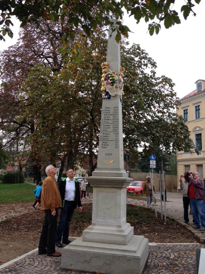 Seit Beginn der Menschheitsgeschichte war die Schaffung von Verkehrs- und Kommunikationswegen von entscheidender Bedeutung für die Entwicklung einer Region. Noch vor einigen hundert Jahren war das Reisen in unserer Region ein beschwerliches Unterfangen - erst im 17. Jahrhundert begannen Maßnahmen zur Verbesserung der Situation. Kurfürst August der Starke beauftragte 1721 die Vermessung der wichtigsten Wege und die Aufstellung so genannter Postmeilensäulen. In Oschatz wurden 1724 gleich drei solcher Distanzsäulen errichtet, da die Stadt an der alten Leipzig-Dresdener Straße verkehrsgünstig gelegen war. Wohl in den 1830er Jahren fielen diese dem Straßenausbau zum Opfer. Eine der drei Postmeilensäulen hat der Oschatzer Geschichts- und Heimatverein e. V. zwischen 2013 und 2014 auf dem Leipziger Platz in Oschatz neu errichtet. Die Sparkassenstiftung förderte dieses Projekt mit insgesamt 15.000 Euro.