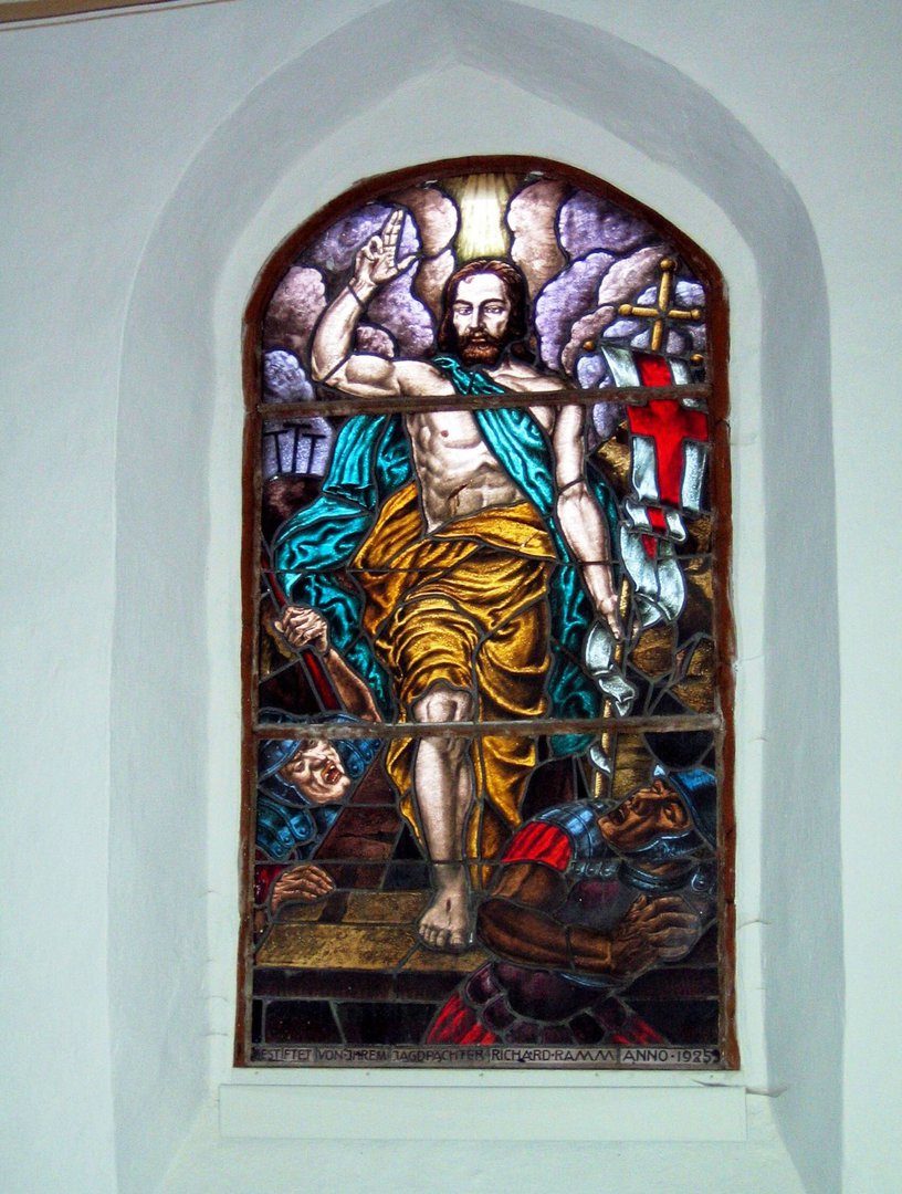 Die beiden Kunstwerke waren der Kirchgemeinde 1925 von Jagdpächter Richard Ramm gestiftet worden. Sie markieren Geburt und Auferstehung von Jesus Christus: Ein Fenster zeigt die Krippenszene mit Maria und dem Jesuskind, das andere den auferstandenen Christus. Nach der abgeschlossenen Sanierung sollen beide Fenster den Altarraum wieder erhellen und den neuen alten Blickfang der Lampersdorfer Kirche bilden.