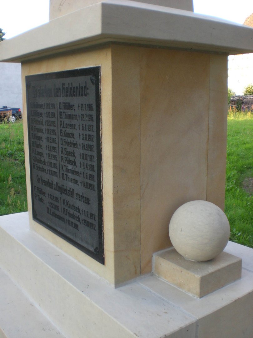 Wie in allen großen und auch kleinen Orten in Deutschland, so findet sich auch im Örtchen Weidenhain, einem Ortsteil der Gemeinde Dreiheide bei Torgau, ein Denkmal, dass an die Gefallenen beider Weltkriege erinnert. Auf je einer Tafel werden die Namen der gefallenen Soldaten des Ortes aufgelistet. Der schlechte Zustand des Mahnmals wird jedoch dem Andenken der Toten nicht gerecht, eine Restaurierung ist unumgänglich geworden, die schließlich durch die Gemeindeverwaltung noch in diesem Jahr in Auftrag gegeben werden kann.