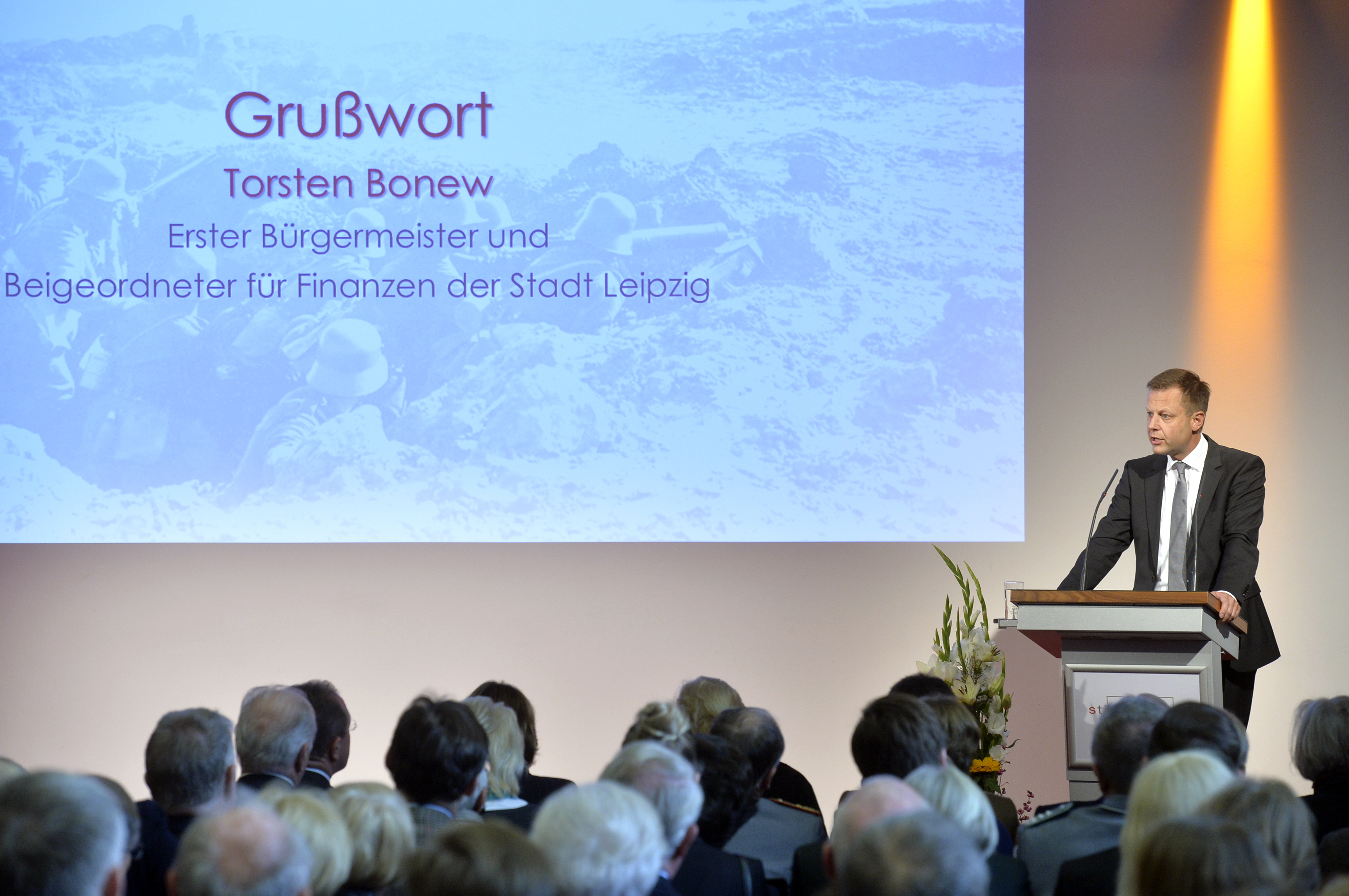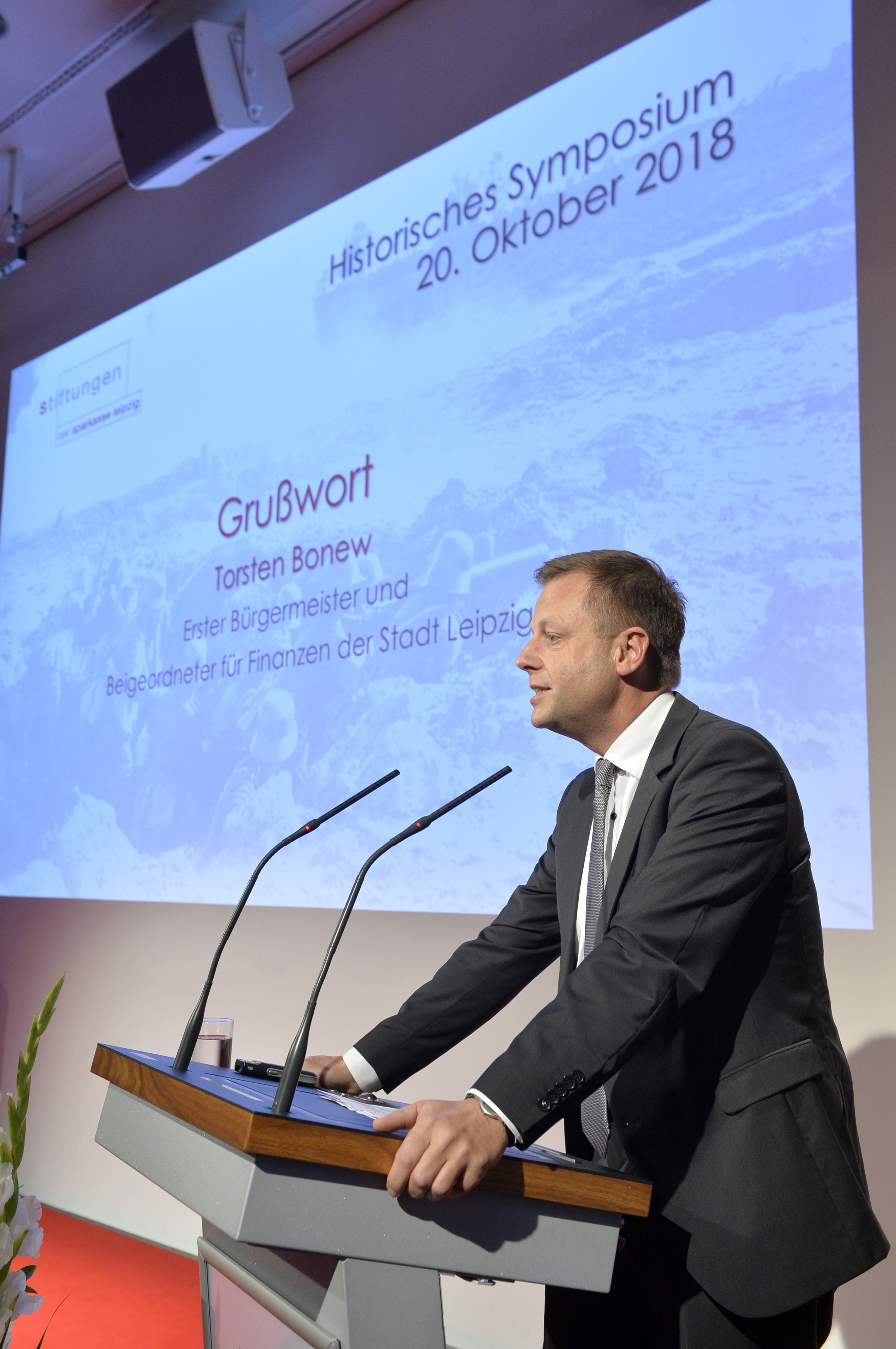 Grußwort von Torsten Bonew, Erster Bürgermeister und Beigeordneter für Finanzen der Stadt Leipzig, beim Symposium "Schicksalsgemeinschaft - Europas Zukunft 100 Jahre nach dem ersten Weltkriegsende" am 20. Oktober auf dem Mediencampus Villa Ida in Leipzig
