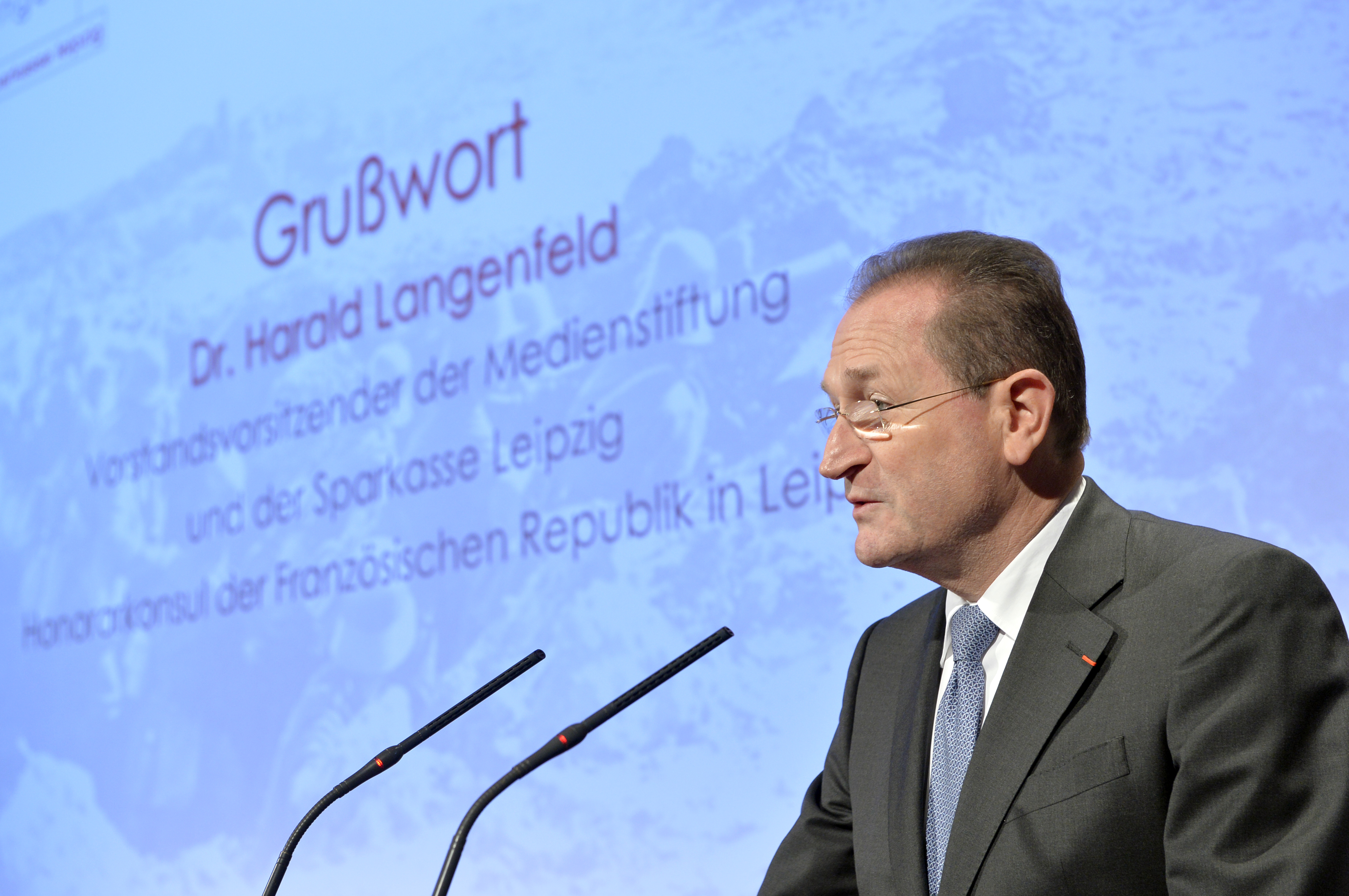 Grußwort von Dr. Harald Langenfeld, Vorstandsvorsitzender der Medienstiftung und der Sparkase Leipzig beim historischen Symposium "Schicksalsgemeinschaft - Europas Zukunft 100 Jahre nach dem ersten Weltkriegsende".