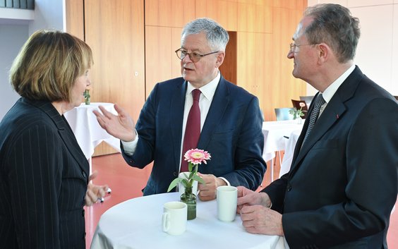 Dr. Harald Langenfeld (Vorstandsvorsitzender der Medienstiftung und der Sparkasse Leipzig) betonte in seinem Grußwort die Bedeutung eines geeinten Europas. Es gelte, "Europa als gemeinsamen Raum des Vertrauens" zu erhalten: "Und in diesem Sinne eine Wertegemeinschaft, die sich nicht abschließt, sondern als offene Gesellschaft ein Angebot macht für Demokratie und Meinungsfreiheit, für Vielfalt und ein friedliches Miteinander".