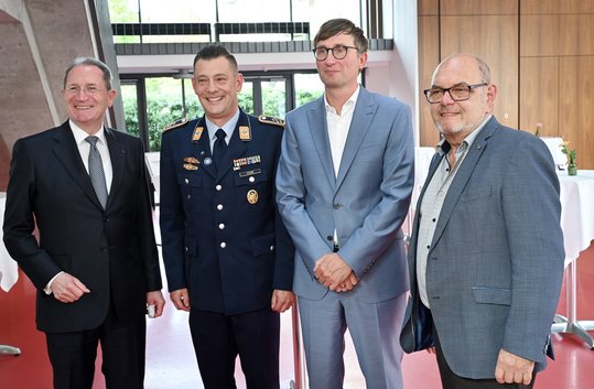 v.l.n.r.: Dr. Harald Langenfeld (Vorstandsvorsitzender der Medienstiftung und der Sparkasse Leipzig), Stabsfeldwebel Heiko Stehr (Vizepräsident des Freundeskreises der Bundeswehr Leipzig e. V.), Prof. Dr. Sönke Neitzel und Oberst a. D. Matthias Reibold (Präsident des Freundeskreises der Bundeswehr Leipzig e. V.).